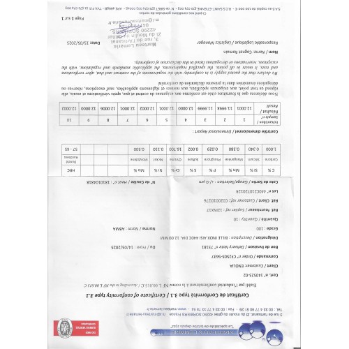 BILLE D12 (avec certificat matière)